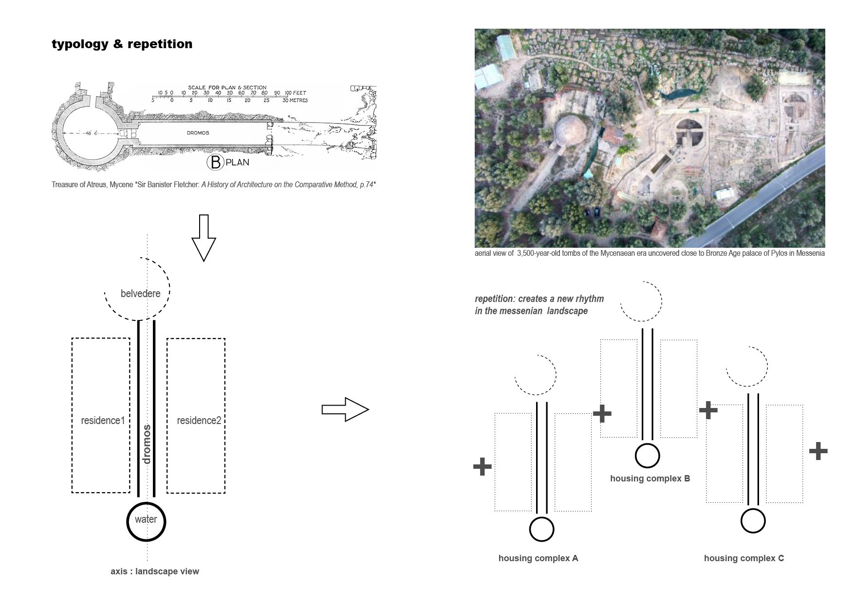 Η φιλοσοφία του σχεδιασμού των κατοικίων, εστιάζει στη γέννηση των κτιριακών κατασκευών μέσα από τη φύση και το περιβάλλον, εντάσσοντάς τες  σε τοπικές τυπολογίες εμπνεόμενες από αρχέτυπα της μυκηναϊκής αρχιτεκτονικής και φιλοσοφίας, παράγωντας “ποιητικές” χωρικές ποιότητες, προκαλώντας το χρήστη να βιώσει διαφορετικές εμπειρίες τόσο με τη φύση όσο και με την ιστορία του τόπου.